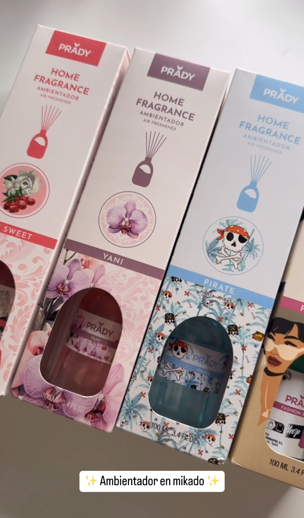 Algodón, Barouge, Bebé, Fashion shop, Jardín de hadas, Karma, Malak, Melón, Palo santo, Piña, Pirate, Piruleta, Sandalo y canela, Sandía, Tarde de cine, Tobacco vanille, Tropical papaya, Victorius, Yani, Yani sweet